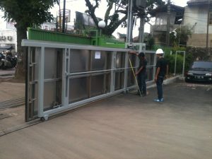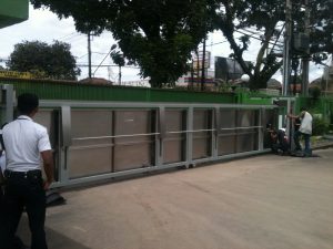 A flood defense system to protect people and property (in private home or commercial and office building), residential properties and whole communities, as well as industrial or other strategic areas from inland waterway floods caused by heavy rainfall, extreme high tides, tsunamis, or failure of dams. Floodgate system is constantly ready for uses in a flash flood situation, and it can be designed and installed in any length and height.